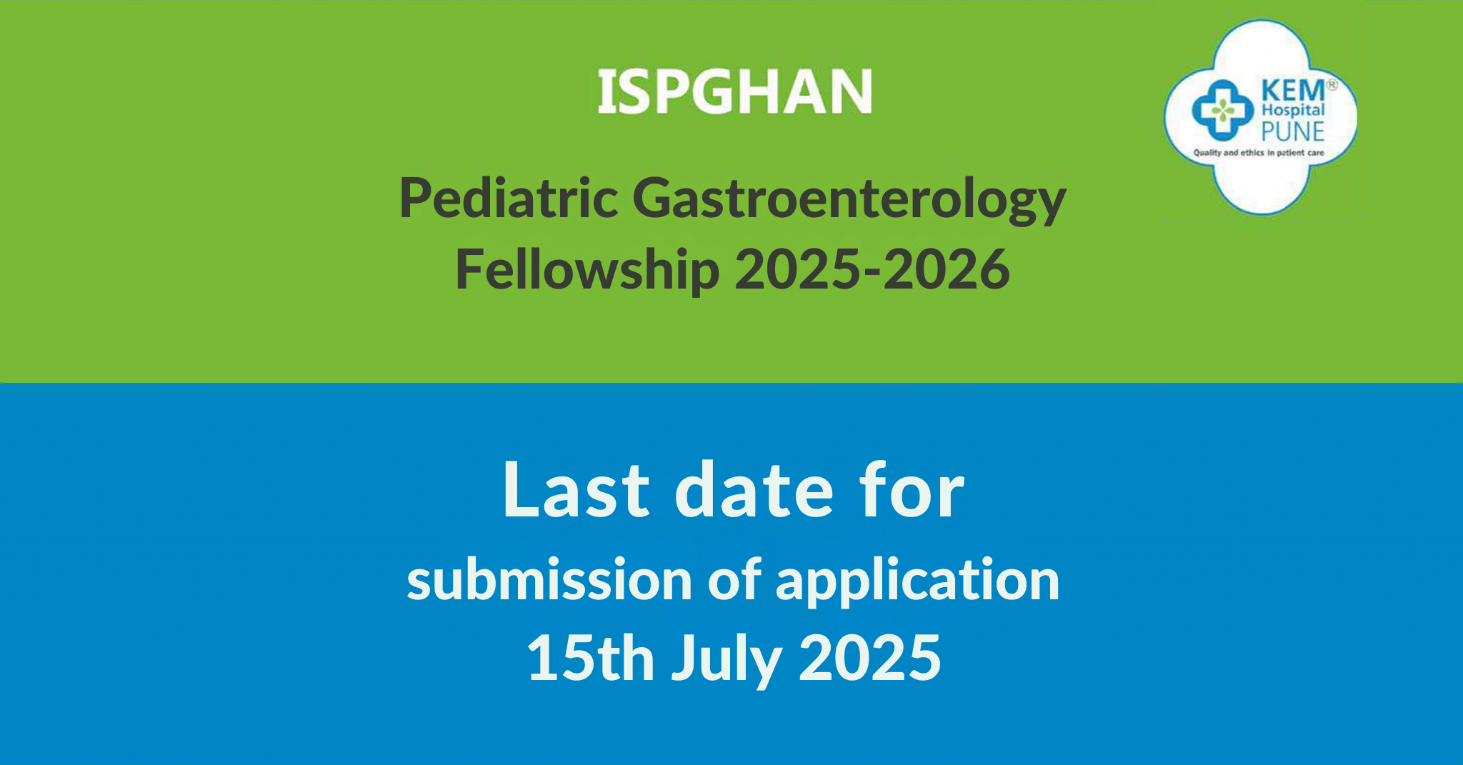 Indian Society Pediatric Gastroenterology, Hepatology and Nutrition (ISPGHAN) invites application for the entrance examination for Fellowship of duration one year for the academic session starting from 1st August 2025 , as per the details given below:
